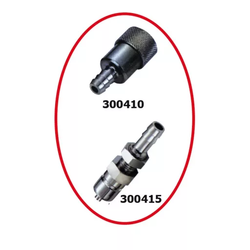 Priključek za gorivo za motorje Tohatsu in Nissan. Matica, nameščena na cev za gorivo, se nahaja na strani nad motorjem.