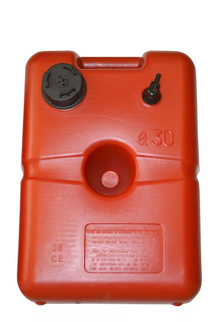 30-litrski rezervoar za gorivo iz visoko trdnega, negorljivega polietilena. Je varen za prevoz in ne pušča. Velikost: 49 cm dolg, 33 cm širok, 27 cm visok.