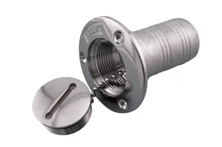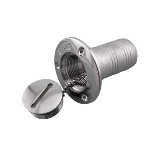 Polnilni nastavek za rezervoar (38 mm) iz kovine, brez prezračevanja, kromiran kovinski pokrov z varnim zapiranjem.