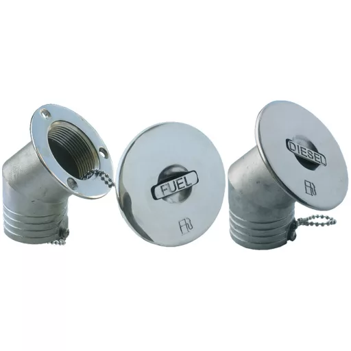 45-stopinjski poševni kovinski polnilni nastavek s kromiranim kovinskim pokrovom z zaščito pred izgubo Material: nerjaveče jeklo Dolžina: 155 mm, premer cevi 50 mm