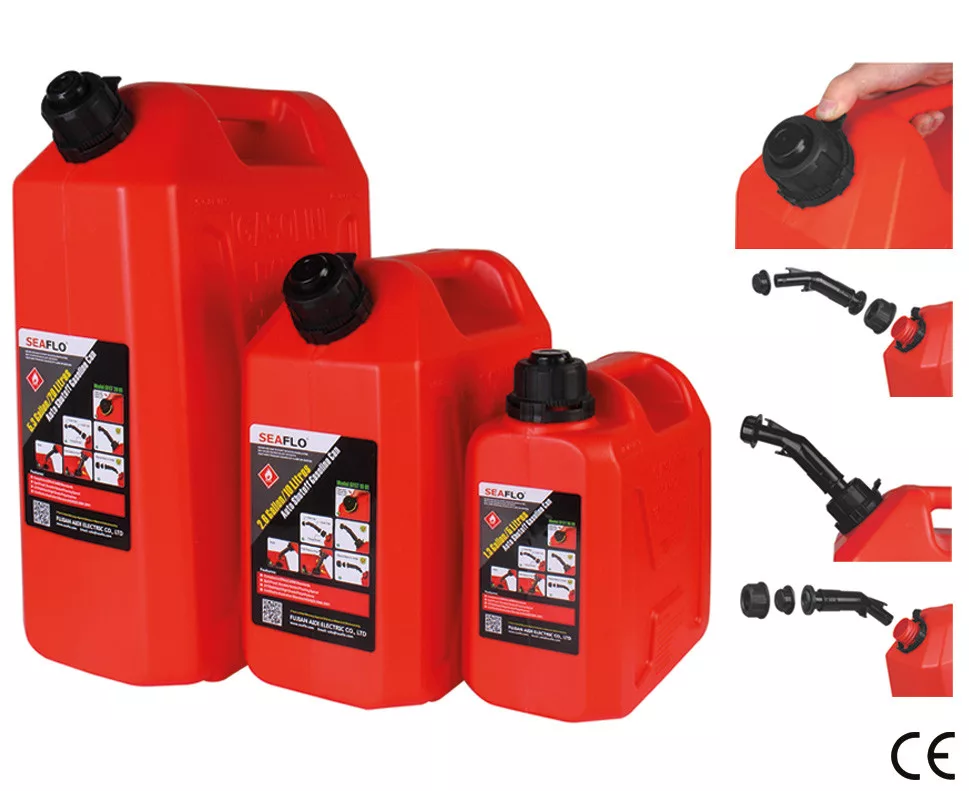 Rezervoar za gorivo, z udobnim povratnim ventilom, ki olajša pretok bencina v rezervoar. Idealno za prevoz ali shranjevanje bencina ali drugih vnetljivih tekočin.