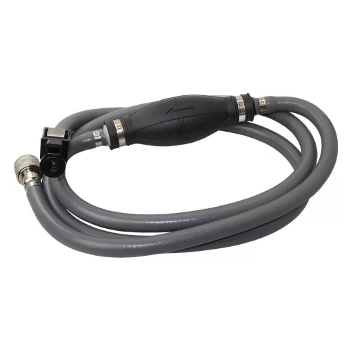 A 2 méter hosszú üzemanyagszívó tömlő gyorscsatlakozós rendszerrel és beépített üzemanyag pumpával van ellátva, amely megkönnyíti az üzemanyag átvitelét tartályok, motorok és berendezések között. A gyorscsatlakozók lehetővé teszik a biztonságos és gyors csatlakoztatást, illetve leválasztást, a pumpa pedig elősegíti a folyadék elindítását kézi nyomással. A tömlő kiváló minőségű, üzemanyagálló anyagból készül, amely ellenáll a kopásnak és a benzin hatásainak.